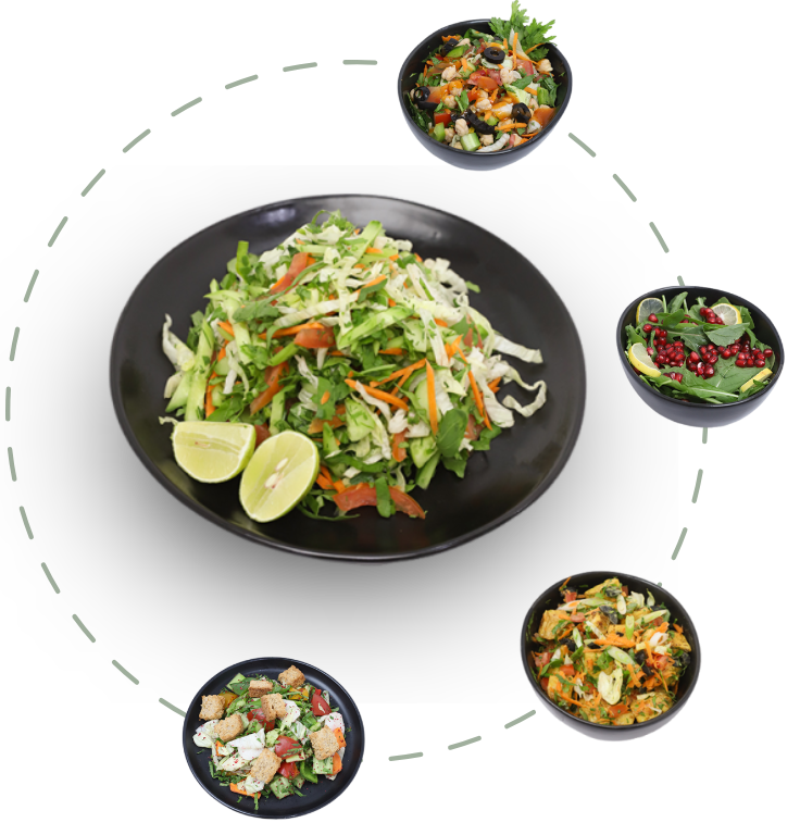 استمتع بمجموعة سلطاتنا المتنوعة، المحضّرة يوميًا من أجود الخضروات والمكونات الطازجة